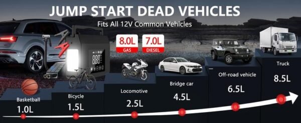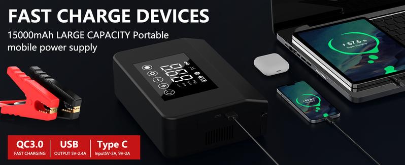 Black Friday, Portable Car Jump Starter, 4000A Car Battery Jump Starter with 150PSI Tire Inflator, 12V Car Battery Jump Starter, 15000mAh Power Bank, with LED Light